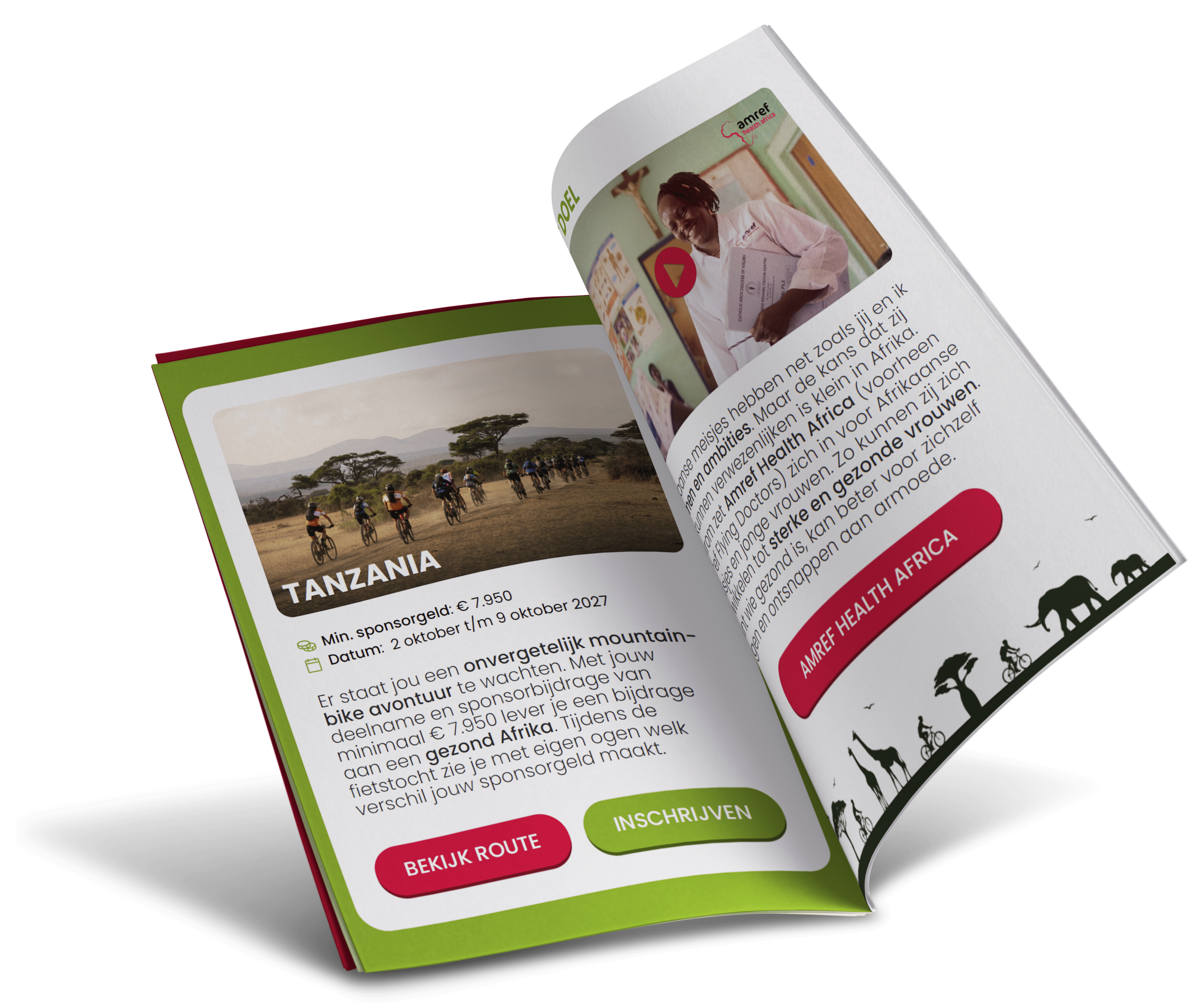 Lees alles over de routes, het overnachten in de wildernis en het goede doel Amref Health Africa. Vraag de online brochure aan en bereid je voor op een onvergetelijk avontuur.